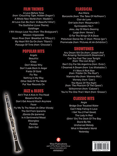 60 solos de pour débutant à clarinettiste intermédiaire, répartis en musique de films, pièces classiques, jazz et blues, succès polaires...